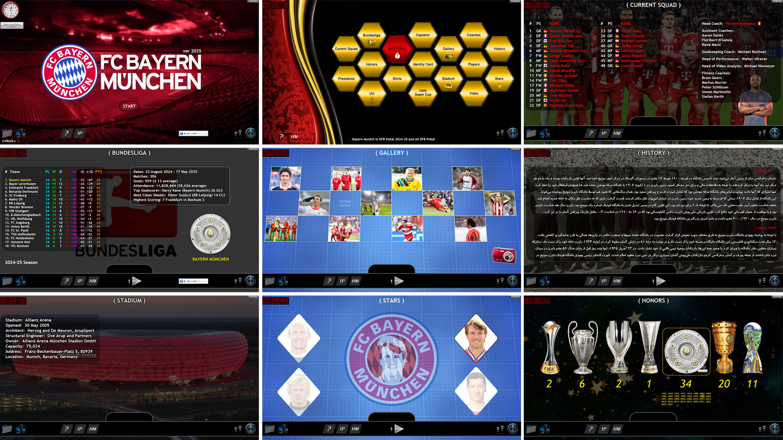 اف سی بایرن مونیخ نرم افزاری جامع و منحصر به فرد برای تمامی علاقه مندان به این باشگاه می باشد. از ویژگی های این نرم افزار می توان به دارا بودن موزیک و بک گراند های زیبا برای هر بخش و ظاهری بسیار زیبا و کاربر پسند اشاره کرد. همچنین دارای ظاهری زیبا و کاربر پسند و دسترسی آسان به تمامی بخش های مورد نظر و همینطور ساپورت رزلوشن مانیتورهای بزرگ و نصب بر روی انواع سیستم عامل های ویندوز نام برد. هواداران باشگاه بایرن مونیخ با داشتن این نرم افزار می توانند تاریخچه کامل بایرن را از ابتدای تاسیس تا اکنون در اختیار داشته باشند.