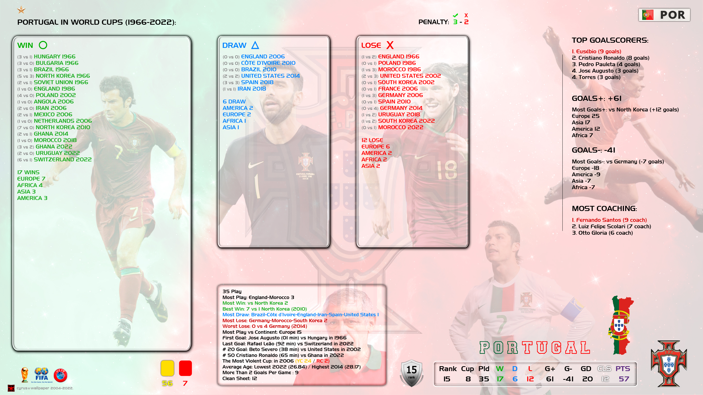 پرتغال در انتخابی جام جهانی 1954 با نتیجه 9 بر 1 در دو بازی رفت و برگشت به تیم قدرتمند اتریش باخت تا نتواند به جام جهانی برود.
